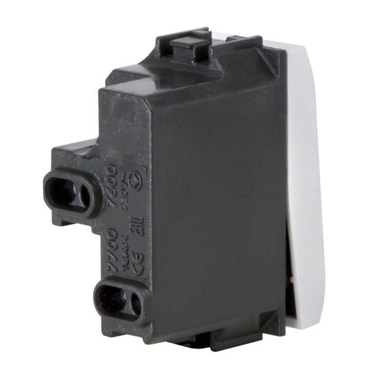 Выключатель. Назначение: включение/выключение освещения. Характеристики: номинальный ток − 16 А; номинальное напряжение − 250 B. Кол-во модулей: 1. Цвет: белый.