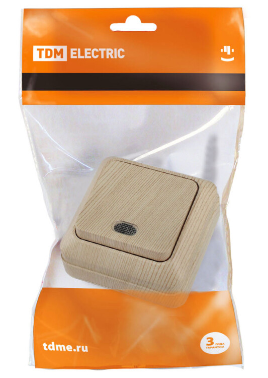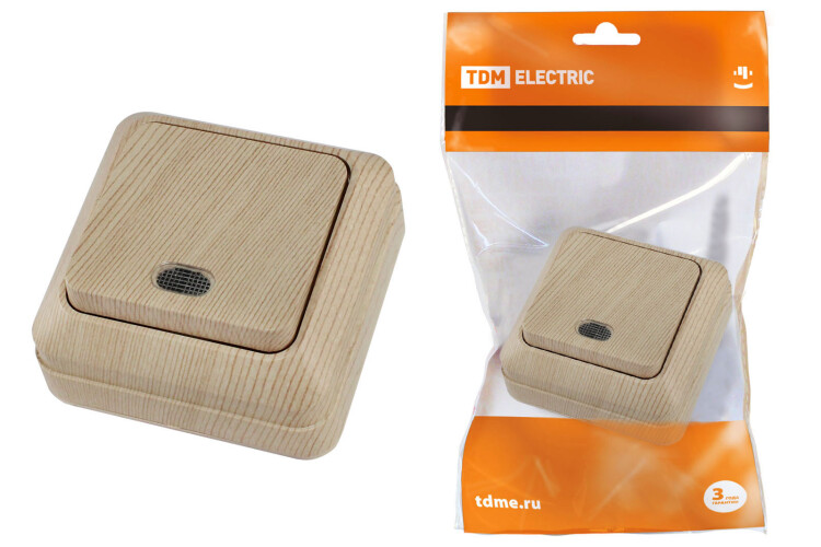 ЛАДОГА Выключатель 1-кл. с подсветкой 10А сосна TDM (10/200шт)