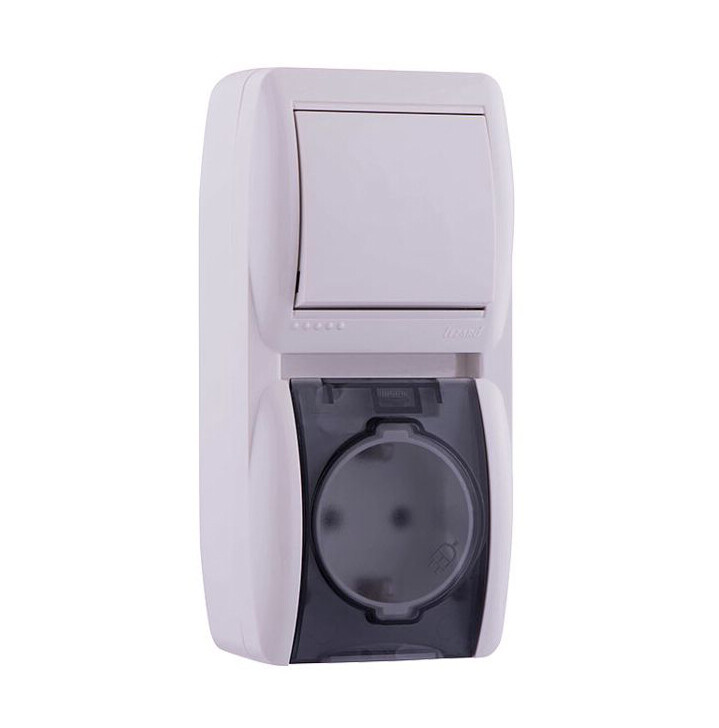 NATA Выключатель 1-кл. и розетка 1-ая вертикальная с/з с крышкой белая LEZARD (10шт/120шт)
