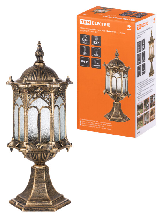 Светильник садово-парковый "Ампир" 60Вт стойка шагрень/бронза Е27 TDM
