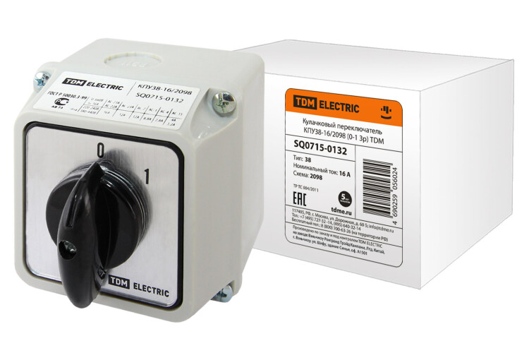 Применение:Как коммутационный элемент в щитах постоянного и переменного токовВ щитах управления АВР, двигательной нагрузкой, управления освещением, аварийного выключения, управление режимами для ТПУправление агрегатами и всевозможными приводами секционных выключателей, разъединителей, заземлителей на подстанцияхПереключение режима работы трансформатора в сварочном оборудованииУправление режимами работы ТЭНов в нагревательном оборудовании Материалы:Применение на контактах композита серебро-оксид кадмия позволяет использовать переключатели для прямого управления мощными электрическими нагрузками. Бокс переключателей КПУ изготовлен из негорючего самозатухающего пластикаПреимущества:Из широкого ассортимента разработанных коммутационных схем сейчас в ассортименте представлены 37 наиболее ходовых схем, которые покрывают 95% потребностей рынкаПотребитель имеет возможность приобрести отдельно защитный бокс IP54 для переключателей и собрать самостоятельно переключатель в боксеВ ассортименте имеются переключатели для ампермеров (1 исполнение) и для вольтметров (3 исполнения), которые позволяют при помощи однофазного измерительного прибора и данного переключателя проводить измерения токов и напряжений в трехфазных сетяхВ ассортименте есть многопозиционные переключатели 0-1-2-3 и 0-1-2-3-4, которые могут применяться для переключения нагрузки на разные режимы работыВ ассортименте имеются КПУ с коммутационными схемами, характерными как для отечественных производителей (без перемычки между выходными контакта ми), так и для зарубежных производителей (с перемычкой между выходными контактами)Ценa кулачковых переключателей TDM Electric ниже аналогов других отечественных и зарубежных производителей Назначение:Для управления и коммутации электрической нагрузки, схем управления и др. Конструкция:Переключатель исполнения КПУ11 монтируется на переднюю панель щитка 4-мя болтамиПереключатель исполнения КПУ38 в защитном боксе имеет степень защиты IP54 и крепится к монтажной поверхности задней стенкой. Крепление рукоятки и передней панели к корпусу одним болтом обеспечивает их быстрый съем и быстрый монтаж переключателя на переднюю панель щитка. Винтовые зажимы для подключения подводящих проводников обеспечивают их надежную фиксацию