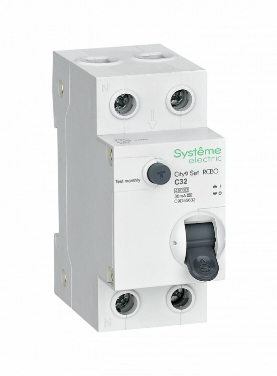 Автоматические выключатели дифференциального тока (АВДТ) серии City9 Set Systeme Electric,1P+N, номинальный ток 32 А, характерис тика С, Icn = 4.5 кА, ток утечки 30 мА, тип А. АВДТ применяется в электрических сетях напряжением 230В. Предназначен для защиты сети от перегрузок, людей от поражения электрическим током и токов короткого замыкания. Уставка по току утечки 30 мА обеспечивает гарантированную защиту людей при прямом прикосновении. Кнопка тест обеспечивает проверку работоспособности аппарата. Крепление на DIN-рейку шириной 35 мм. Безопасные клеммы.