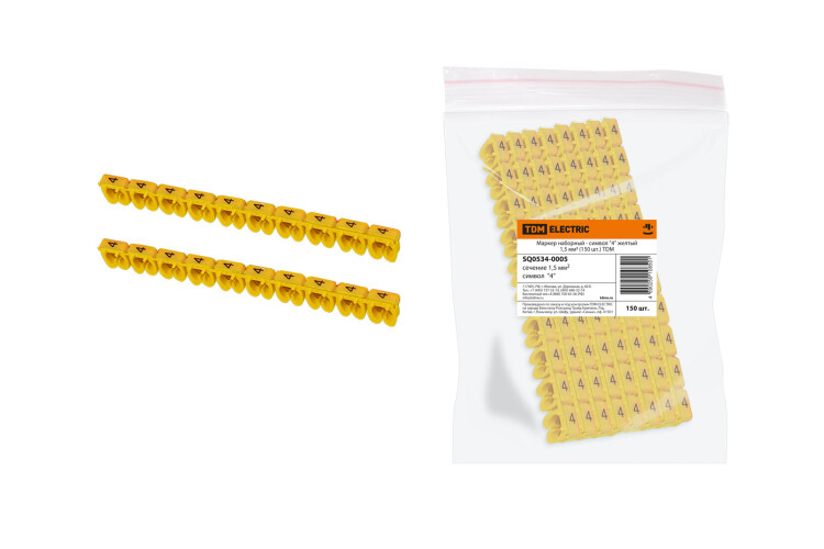 Применение:В промышленных установках.В электрощитах.На объектах электроснабжения. Материалы:Изготовлены из негорючего полиамида (PA66), устойчивого к температурным воздействиям и действию агрессивных сред (масла, смазочные материалы и т. д.).Преимущества:Открытый профиль маркера позволяет производить установку на уже подключенные провода.Боковые штифты позволяют создать ровные группы маркеров на кабеле.Быстрое и надежное крепление маркеров на кабеле. Международная система цветовой кодировки маркеров. Назначение:Для разметки кабеля в распределительных щитах, местах подключения и т. д. Упаковка:Маркер наборный - символ (100 шт.) по 10 шт.Маркеры наборные комплект цифр (100 шт.) по 10 шт.