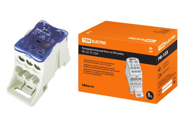 Применение:На объектах энергоснабжения.В электрощитах.В промышленных установках. Материалы:Контактная группа блока выполнена из луженой латуни.Корпус блоков выполнен из не поддерживающего горение полиамида PA6.6.Преимущества:Большое количество точек подключения с возможностью использования как проводников с наконечниками, так и без них, с возможностью визуальной проверки присоединения кабеля.Наличие соединительных вырезов на боковых стенках блоков позволяет объединять их в многополюсные конструкции.Создание упорядоченной распределительной структуры в шкафах и сборках.Лицевая панель обеспечивает блоку степень защиты IP20 и предотвращает случайные прикосновения к токоведущей части блока.Помимо крепления на DIN-рейку предусмотрена возможность крепления блока на поверхность (монтажные платы и т. д.). Назначение:Для создания упорядоченных систем распределения в электрощитах.Для структурированного подключения отводных линий. Упаковка:РБ-80 1П 80А (1х16/4х6+2x16) по 6 шт.РБ-125 1П 125А (1х35+1x16/6x16) по 6 шт.РБ-160 1П 160А (1х70+1x16/6x16) по 6 шт.)РБ-250 1П 250А (1х120/2x35+5x16+4x10) по 6 шт.РБ-400 1П 400А (1х185/2x35+5x16+4x10) по 6 шт.РБ-500 1П 500А (плоские шины от 3х15 до 8х24/2x35+5x16+4x10) по 6 шт.