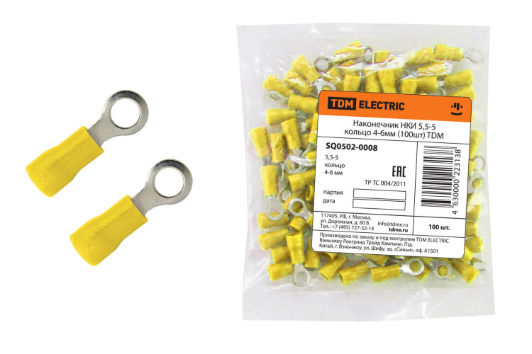 Наконечник НКИ 5,5-5 кольцо 4-6мм2 (100шт) желтый TDM (5/60уп)