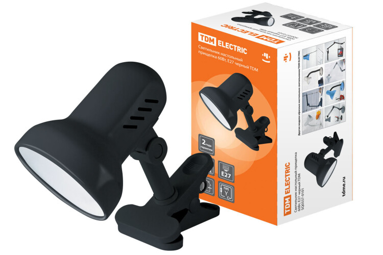 Светильник настольный прищепка 60Вт, E27 черный TDM