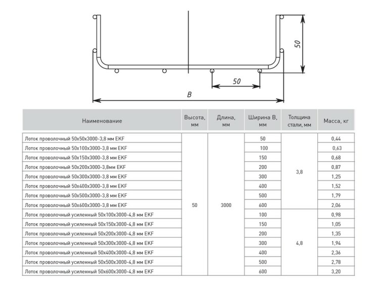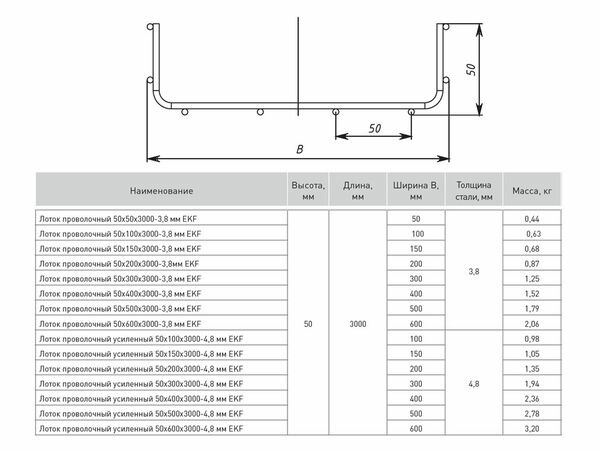 Система металлических проволочных лотков R-Line отличается высоким качеством и предназначена для размещения силовых и информационных кабелей внутри объектов различного назначения. Проволочные лотки R-Line позволяют значительно и проще в монтаже. Для построения трассы не требуются системные аксессуары (углы, ответвители, переходники), как для других типов лотков. Любые повороты и ответвления изготавливаются непосредственно на месте монтажа. Широкий ряд типоразмеров лотков позволяет разработать кабельную трассу любой сложности. Испытания проволочных лотков R-Line EKF показали высокую огнестойкость и сохранность всех характеристик в условиях пожара. Облегченная конструкция проволочного лотка делает его легким в транспортировке и хранении.