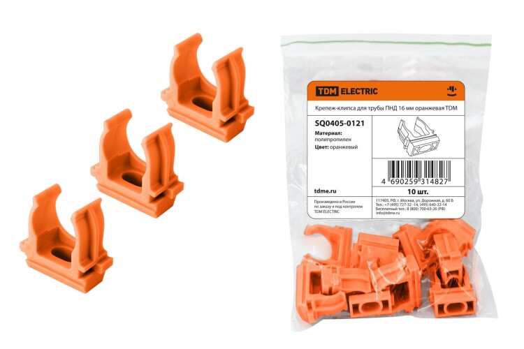 "TDM" Крепеж-клипса пласт. оранжевая d16мм 10шт/уп