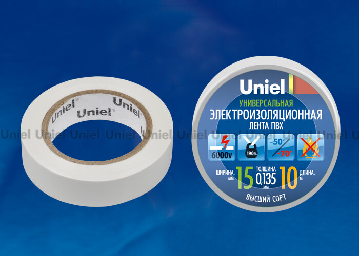 UIT-135P 10/15/01 WHT Изоляционная лента Uniel 10м, 15мм, 0,135мм, 1шт, цвет Белый