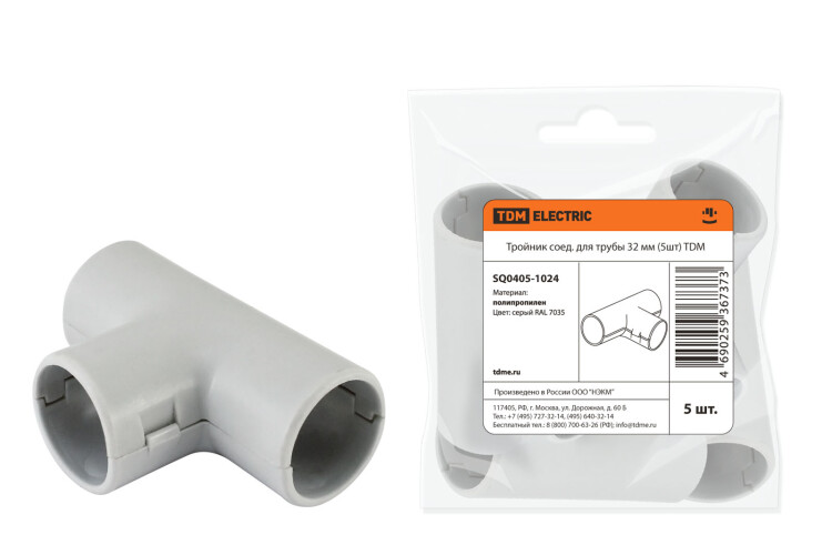"TDM" Тройник для пласт. трубы серый IP40 d32мм 5шт/уп