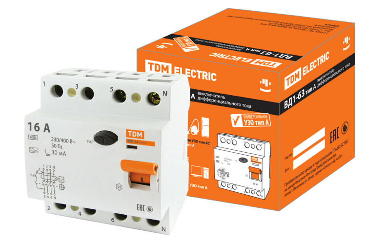 УЗО ВД1-63 тип А 4Р 16А 30мА ТДМ