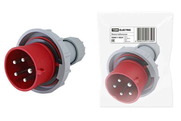 Вилка кабельная IP67 32А 3Р+РЕ+N 380В TDM