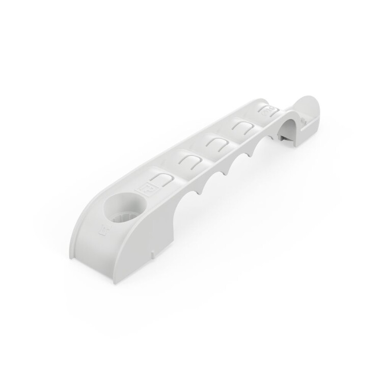 Держатель труб для прямого монтажа односторонний на 5 мест d16 Промрукав - это специализированный крепеж, предназначенный для крепления гофрированных и гладких пластиковых труб диаметром 16 мм. Держатель труб разработан для прямого монтажа, что позволяет осуществлять крепление монтажными пистолетами по бетонным поверхностям, но возможен монтаж и классическим способом, используя дюбели и саморезы. С помощью одностороннего держателя труб можно одновременно смонтировать и закрепить до 5 труб. Данную продукцию можно использовать при прокладке линии внутри помещений или под навесом. При необходимости допускается фиксировать край держателя, в том числе монтажным пистолетом, для обеспечения максимально возможной надежности фиксации трубы. Для удобства монтажа на крупных объектах в продажу выпущена упаковка в гофрокоробе по 250 штук.