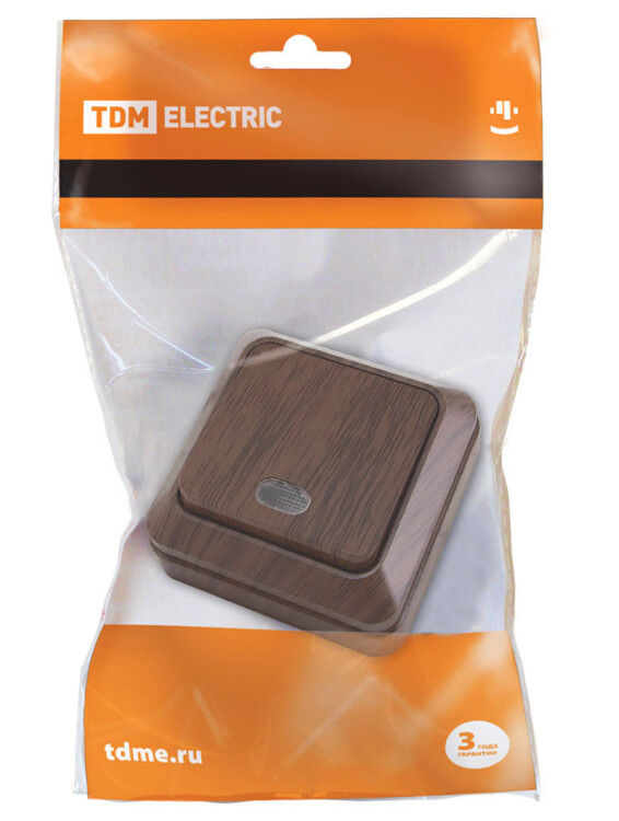ЛАДОГА Переключатель 1-кл. с подсветкой 10А бук TDM (10/100шт)