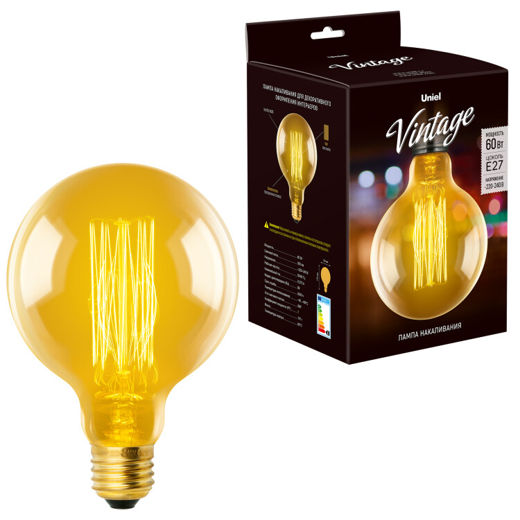 IL-V-G125-60/GOLDEN/E27 VW01 Лампа накаливания Vintage. Форма «шар». Форма нити VW. Картон. ТМ Uniel