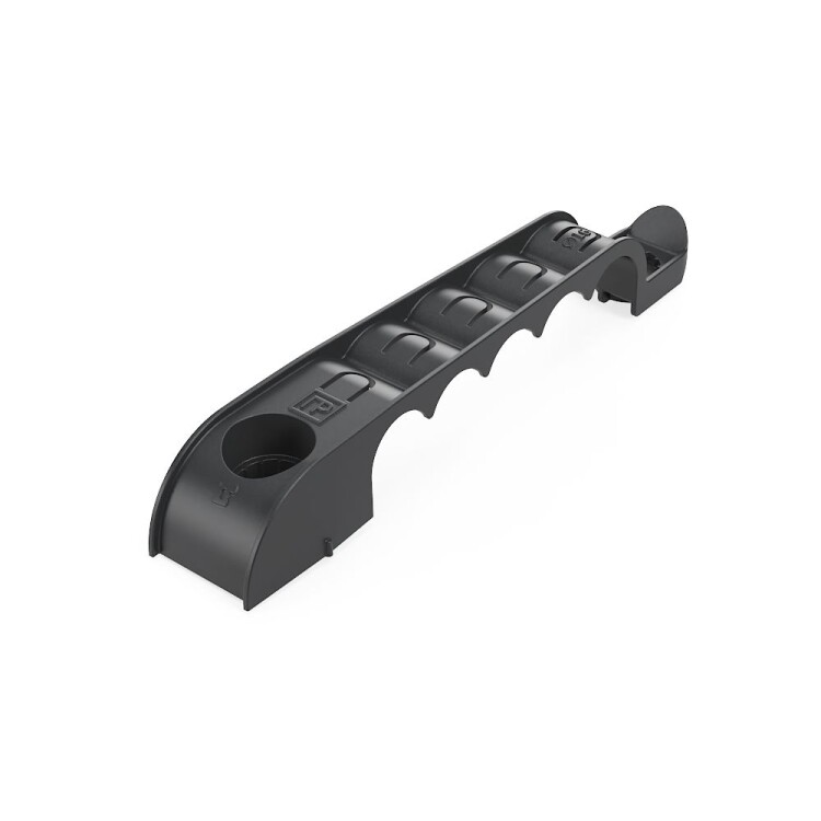 Держатель труб для прямого монтажа односторонний на 5 мест d16 Промрукав - это специализированный крепеж, предназначенный для крепления гофрированных и гладких пластиковых труб диаметром 16 мм. Держатель труб разработан для прямого монтажа, что позволяет осуществлять крепление монтажными пистолетами по бетонным поверхностям, но возможен монтаж и классическим способом, используя дюбели и саморезы. С помощью одностороннего держателя труб можно одновременно смонтировать и закрепить до 5 труб. Данную продукцию можно использовать при прокладке линии внутри помещений или под навесом. При необходимости допускается фиксировать край держателя, в том числе монтажным пистолетом, для обеспечения максимально возможной надежности фиксации трубы. Для удобства монтажа на крупных объектах в продажу выпущена упаковка в гофрокоробе по 250 штук.