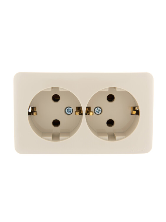 VIOLA Розетка 2-ая с/з закрытый корпус керамика крем LEZARD (12шт/144шт)
