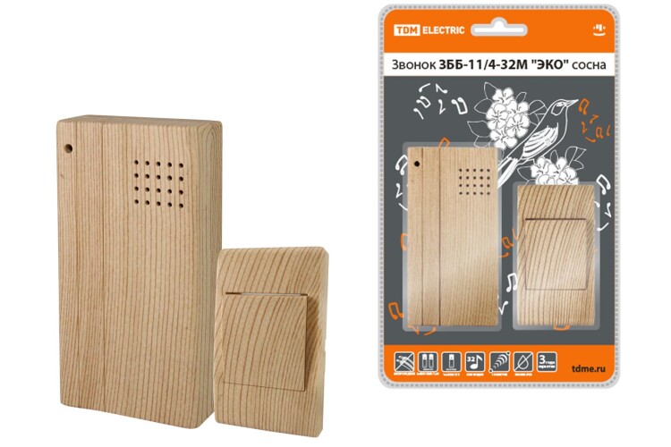 ЭКО Звонок беспроводной на батарейках ЗББ-11/4-32М cосна TDM (1/60шт)
