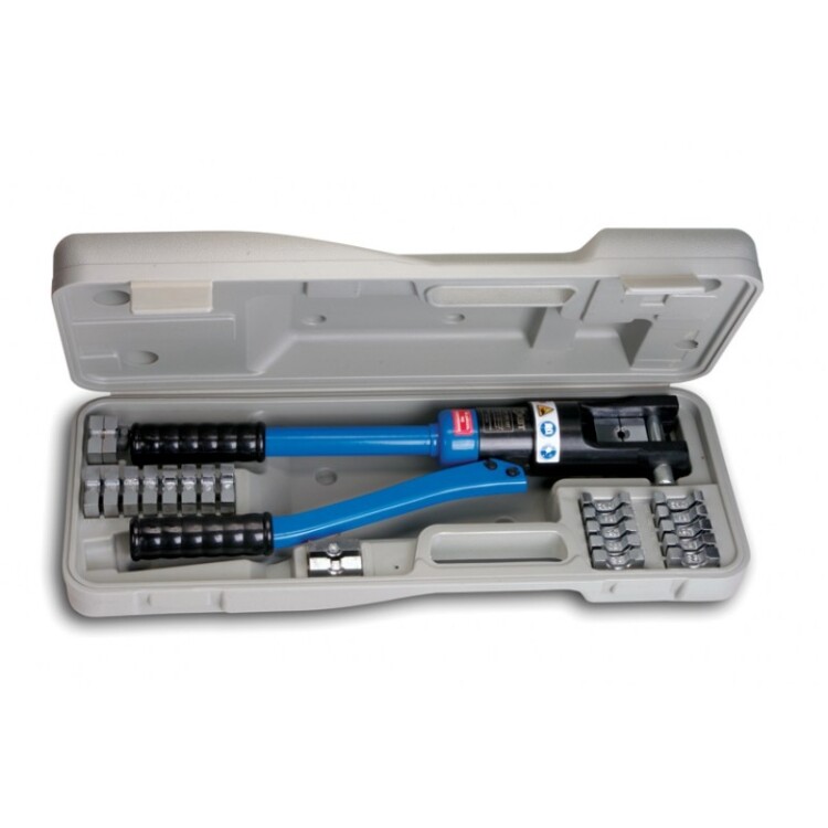 В комплекте:;ручной гидравлический пресс ПГРс-300;набор из 12 сменных матриц;ремкомплект (уплотнительные кольца);прочный пластиковый кейс;Диапазон сечений:;кабельные наконечники 10300 мм2;Механизм автоматического сброса давления (АСД);Клапан ручного сброса давления;Двухскоростная помпа;Усиленная рабочая голова;Максимальное усилие: 12 т;Всесезонное гидравлическое масло КВТ гарантирует работу инструмента при температуре выше минус 15 С;Ход поршня: 20 мм;Вес комплекта/инструмента: 6.50/4.00 кг;Длина: 470 мм;Габариты кейса: 490х185х90 мм;Дополнительные аксессуары: наборы матриц НМ-300 ТМ, НМ-300 ТМЛс, НМ-300 ТА, НМ-300 DIN, НМ-300 ПМ, НМ-300 СОАС, НМ-300 НШВИ, НМ-300 С, НМ-300 СИП;;