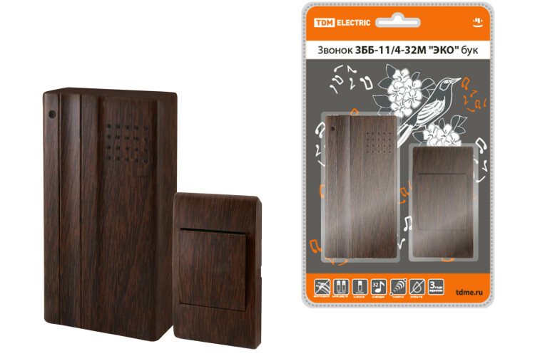 ЭКО Звонок беспроводной на батарейках ЗББ-11/4-32М бук TDM (1/60шт)