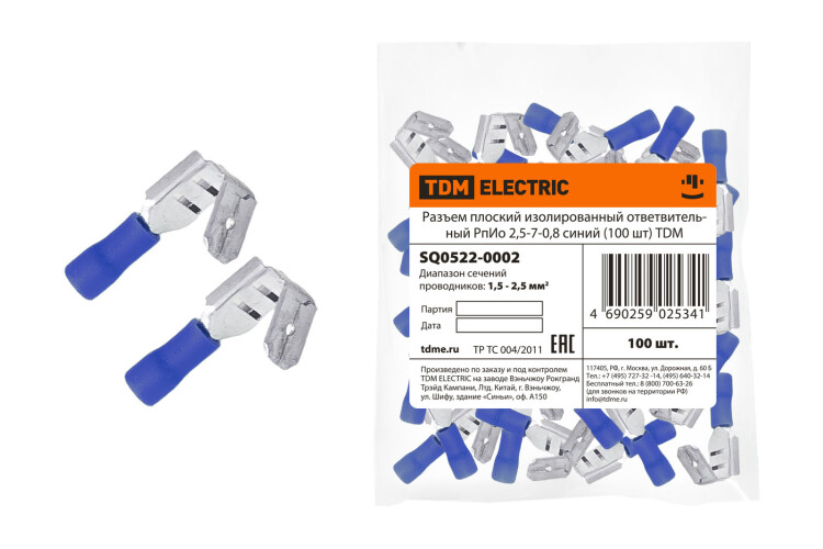 Разъем плоский изолированный ответвительный РпИо 2,5-7-0,8 синий (100 шт) TDM