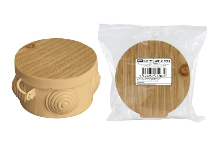 ЭКО Коробка распределительная о/у 4 гермоввода с крышкой 85х40мм IP54 сосна TDM (32шт)