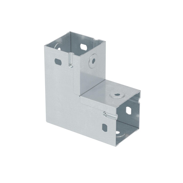 Глухой вертикальный угол 90° – это закрытый аксессуар для поворота трассы под прямым углом в вертикальной плоскости (вверх). Применяется в особенных случаях. Например, когда лоток используется в качестве настенного кабельного канала, или при обвязке оборудования. Конструкция элемента предотвращает возможное повреждение кабеля. Толщина стали – 0,8 мм. Высота - 100 мм, ширина - 50 мм, высота – 50 мм. Исполнение - "цинк-ламель".