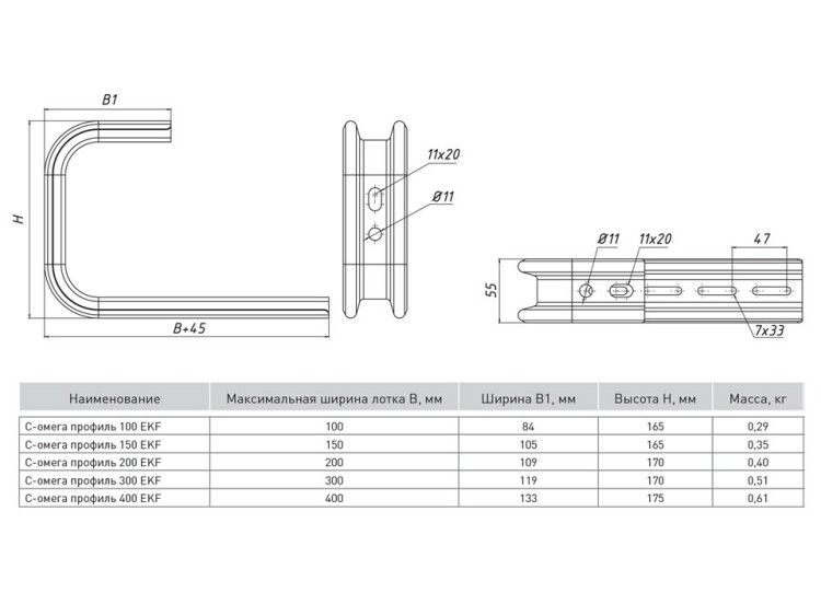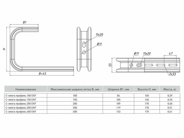 "Омега профили предназначены для легких нагрузок и могут быть смонтированы как к стене, так и к потолку. Они обеспечивают надежный и быстрый монтаж металлических кабельных лотков любой ширины. Имеют удобную перфорацию под анкерные болты или шпильки М10. Стандартная толщина профилей - 1,5 мм. Кабельные лотки EKF-Line крепятся к профилям стандартным комплектом метизов wgm6x16."