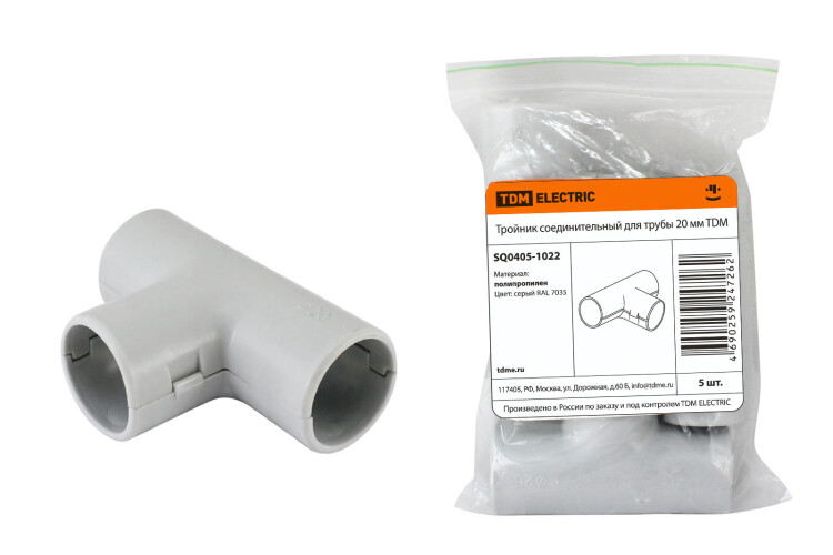 "TDM" Тройник для пласт. трубы серый IP40 d20мм 5шт/уп