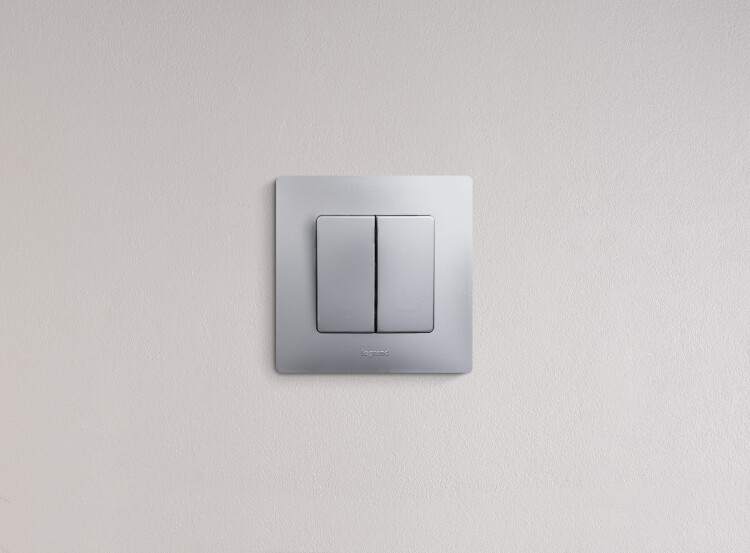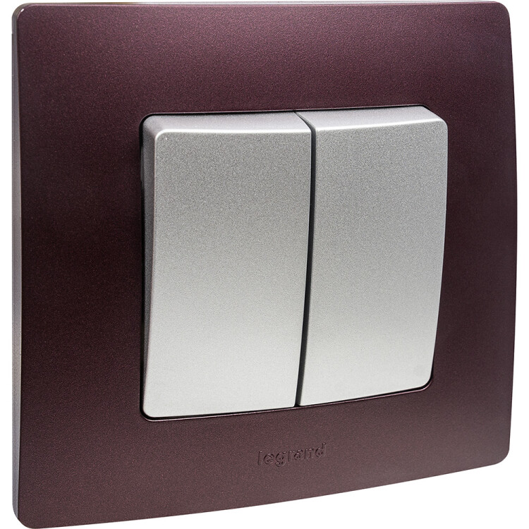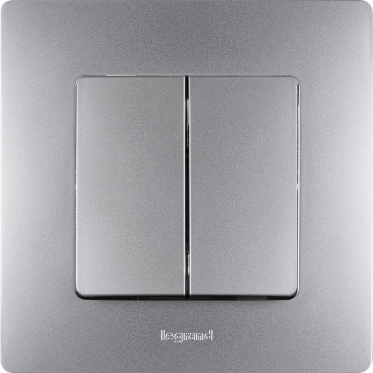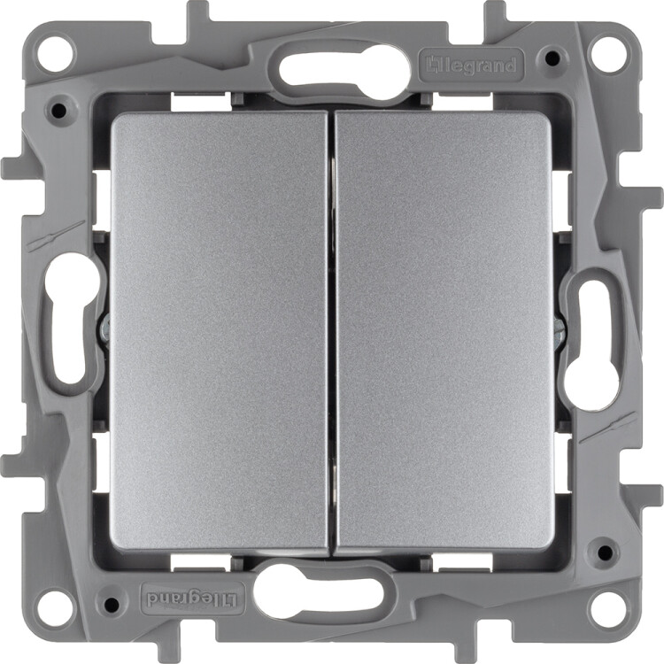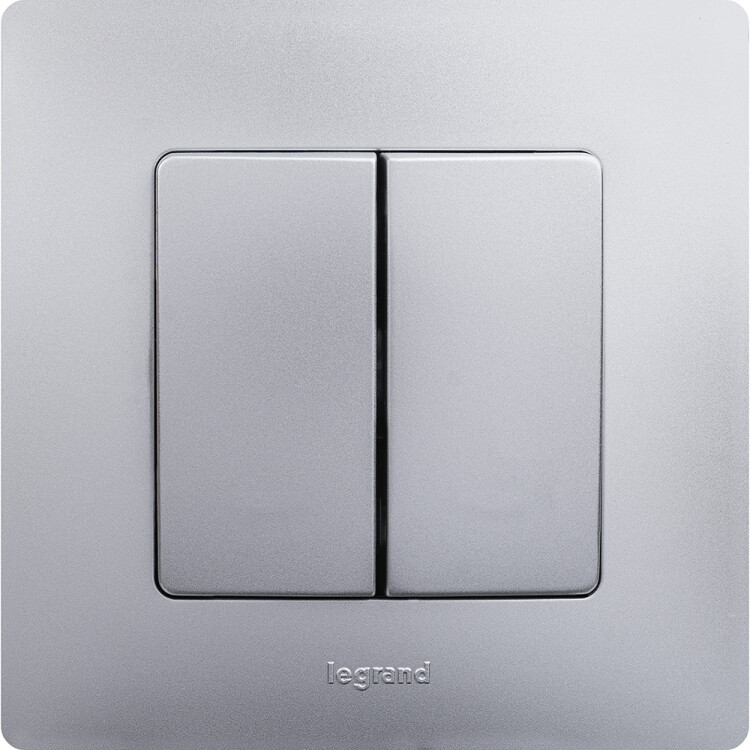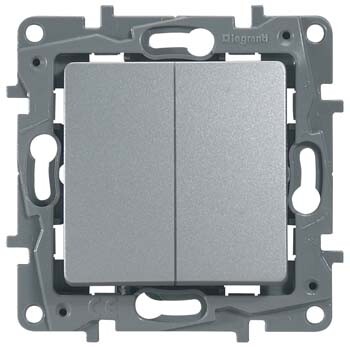 Выключатель двухклавишный - Legrand Etika - 10А 250В безвинтовые зажимы - алюминий