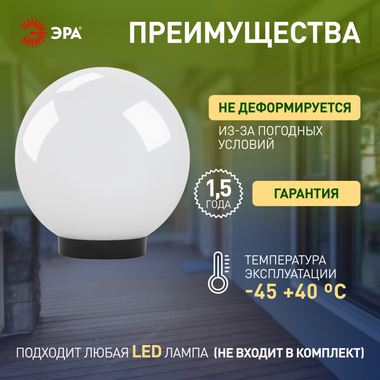 ЭРА НТУ 01-100-351 Светильник садово-парковый, шар белый D=350 mm