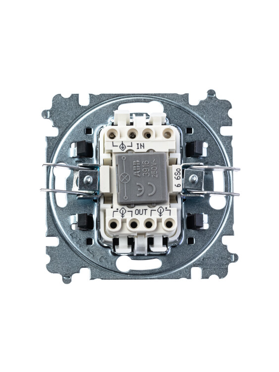 Механизм переключателя в комплекте c накладкой и блоком подсветки для установки в декоративную рамку. Подсветка LED ориентационная белого цвета