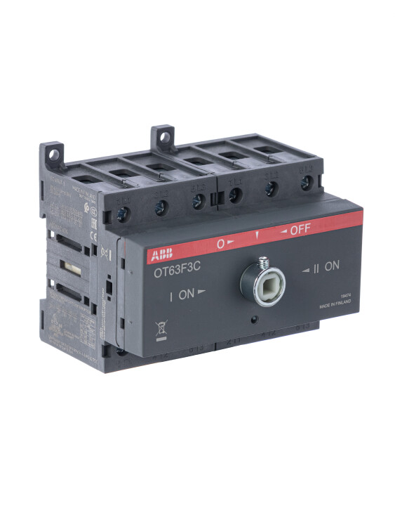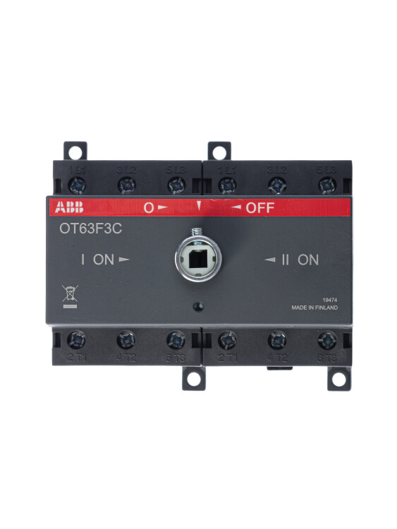 Реверсивный выключатель нагрузки серии ОТ с фронтальным управлением, номинальный ток коммутируемой нагрузки 63 А, 3 полюса, крепление на DIN-рейке или монтажной плате, рукоятка и переходник заказываются отдельно. Выключатель предназначен для частых коммутации активных, смешанных и высокоиндуктивных нагрузок. Подробные технические характеристики представлены в каталоге. Одним из главных преимуществ данной серии выключателей является их высокая надежность и исключительная компактность в сравнении с аналогичными устройстваи других производителей. Страна производитель - Финляндия.