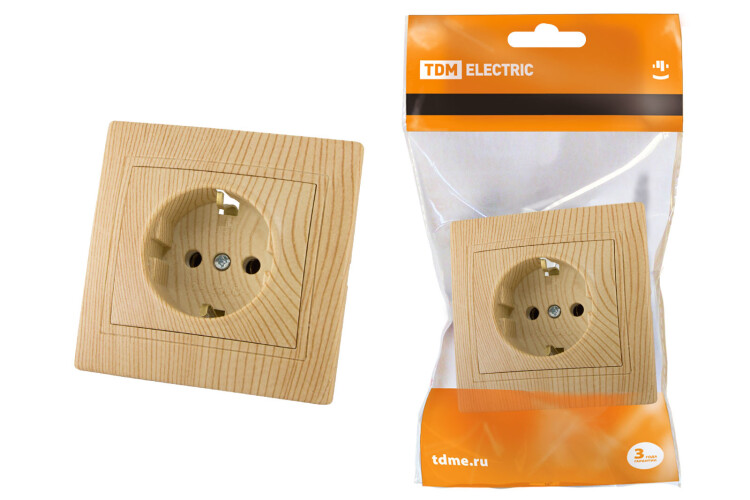 ТАЙМЫР Розетка 1-ая с/з 16А сосна TDM (10/200шт)