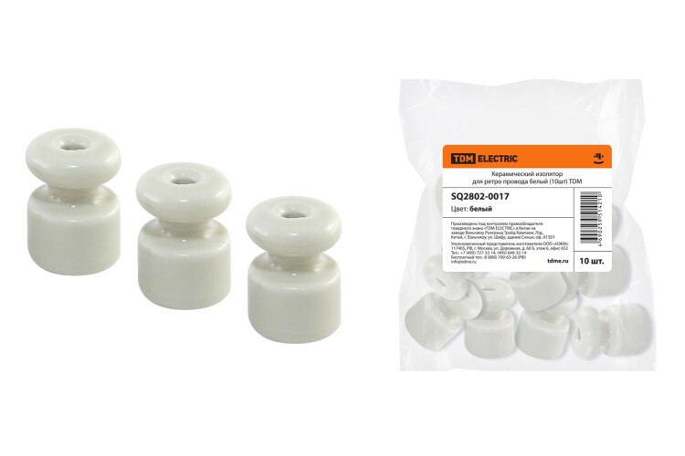 ЭКО Изолятор проходной для ретро-провода керамика белый TDM
