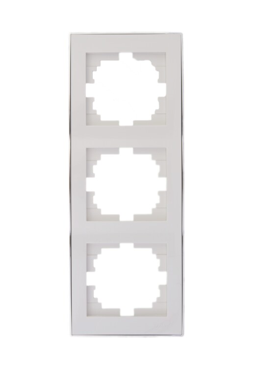 RAIN Рамка 3-ая вертикальная б/вст белая с бок. вст. хром LEZARD (10шт/120шт)