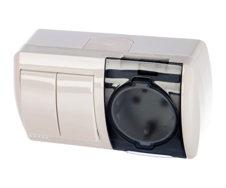 NATA Выключатель 2-кл. и розетка 1-ая горизонтальная с/з с крышкой белая LEZARD (10шт/120шт)