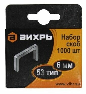 Скобы тип 53 (1000 шт; 6 мм) для мебельного степлера Вихрь 73/9/2/1