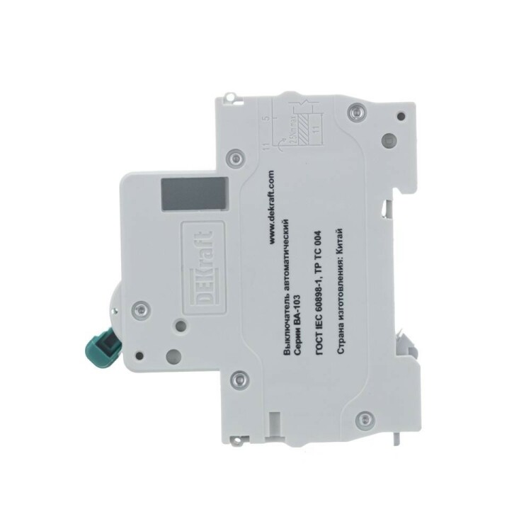 Автоматический выключатель серии ВА-103 NEW DEKraft; 2P; номинальный ток 10 А; характеристика C; отключающая способность 6 кА, что позволяет использовать аппараты в качестве вводных. 5 монолитных заклепок повышают прочность корпуса аппарата. Окошко-индикатор всегда показывает состояние контактов вне зависимости от положения рукоятки управления. Боковые каналы охлаждения повышают стабильность работы при высоких температурах окружающей среды. Есть возможность установки дополнительных аксессуаров с левой стороны устройства. Аппарат на 100% совместим с корпусами и оболочками DEKraft, Systeme Electric.