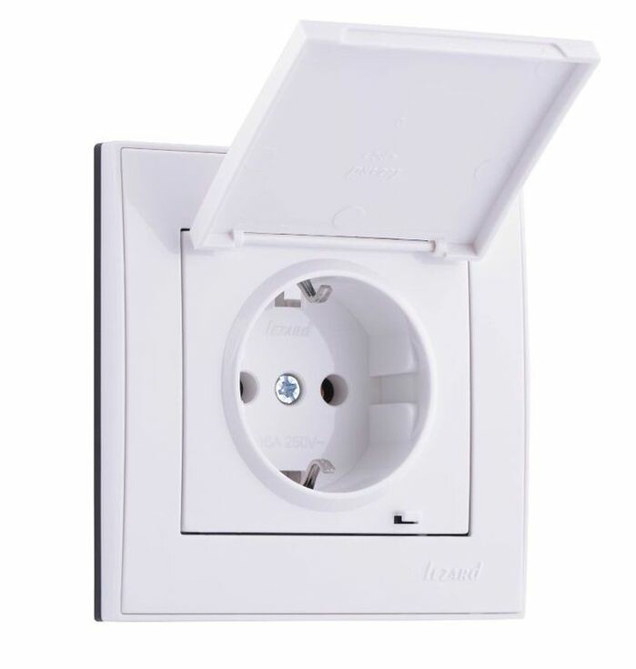 RAIN Розетка 1-ая с/з с крышкой керамика белый LEZARD (10шт/120шт)