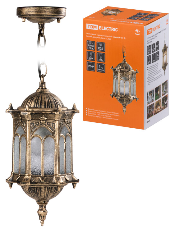 Светильник садово-парковый "Ампир" 60Вт подвес шагрень/бронза Е27 TDM