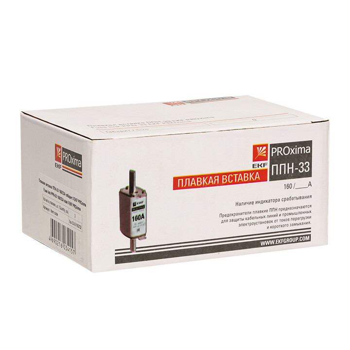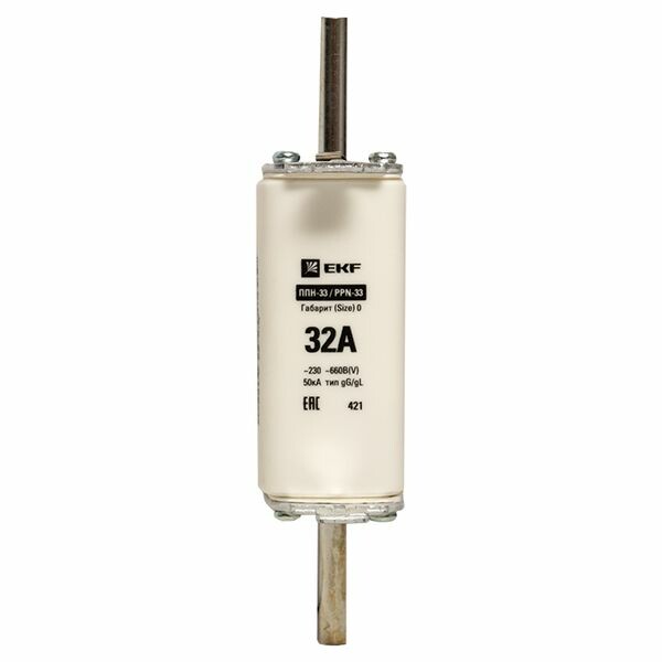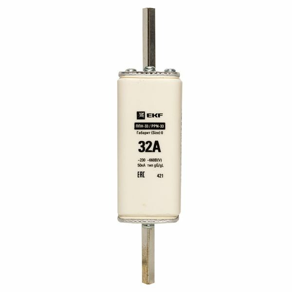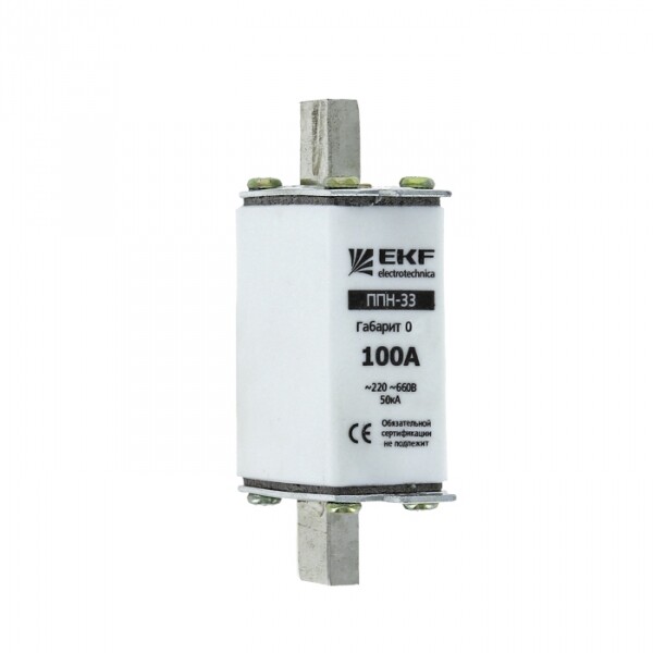 Плавкая вставка ППН-33 160/ 32А габарит 0 EKF. Предохранители плавкие ППН EKF, укомплектованные плавкими вставками типа gG/gL, предназначаются для защиты кабельных линий и промышленных электроустановок от токов перегрузки и короткого замыкания. Предохранители применяются в электрических сетях переменного тока частотой 50 Гц с напряжением до 660В. Применяются для крепления в распределительных и вводно-распределительных устройствах. Предохранители плавкие ППН могут устанавливаться в основание с держателем, а также в специально предназначенные рубильники. В комплект поставки предохранителей плавких ППН основание с держателем не входит и приобретается отдельно.