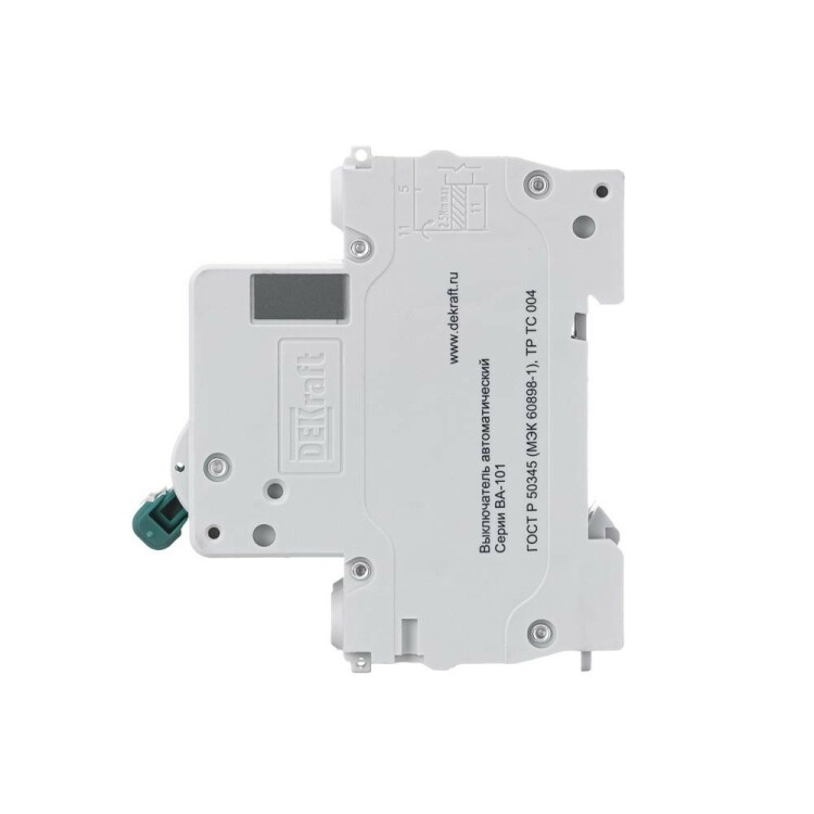 Автоматический выключатель серии ВА-101 Dekraft; 2P; номинальный ток 50 А; характеристика С; отключающая способность 4,5 кА. 5 монолитных заклепок повышают прочность корпуса аппарата. Сплошная лицевая панель обеспечивает безопасность эксплуатации аппарата. Боковые каналы охлаждения повышают стабильность работы при высоких температурах окружающей среды. Есть возможность установки дополнительных аксессуаров с левой стороны устройства. Аппарат на 100% совместим с корпусами Dekraft и Systeme Electric.