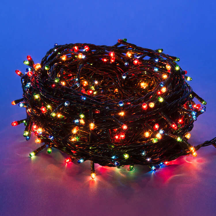 UDL-S2500-500/DGA MULTI IP20 MINI Гирлянда с контроллером, 25м. 500 миниламп накаливания. Разноцветный свет. Провод зеленый. TM Uniel.