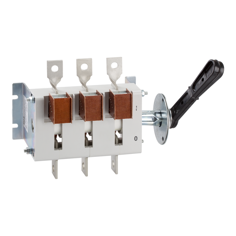 Выключатель-разъединитель 3 полюсный на номинальный ток 400 А, в котором установлена съемная рукоятка.