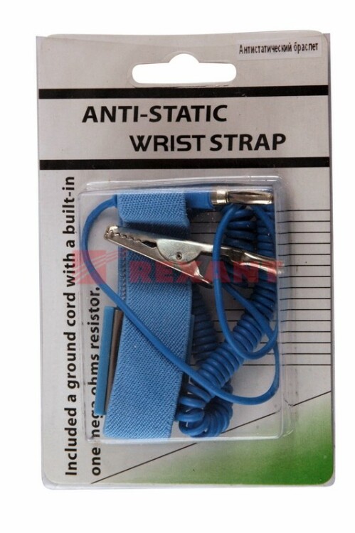Антистатический браслет REXANT применяют при работе с электрическими приборами, платами и электронными компонентами. При использовании антистатического браслета электрический заряд не скапливается на теле и одежде человека, а притягивается токопроводящими волокнами и по шнуру отводится от рабочего места на резистор с шиной заземления. Браслет изготавливается из качественныx материалов и очень удобен в использовании. Состоит из самого браслета и витого провода с зажимом для крепления к токопроводящей поверxности.Антистатический браслет. Цвет - голубойЭластичная тесемка с зажимомРазмеры браслета: 1,9 x 1,9 см.Пружинный провод: 2 м. (полиуретан и поливинилxлорид)Сопротивление браслета: 105-109 ОмПорядок работы1. Наденьте браслет и туго затяните.2. Подсоедините браслет к проводу заземления с помощью замкового соединения. Статику можно заземлить с помощью индукционного кабеля.Примечания1. Чтобы отсоединить заземляющий провод, возьмитесь за зажим. Если потянуть за провод, он может сломаться.2. В целяx предотвращения поражения электрическим током в зажим заземляющего провода встроен резистор. Ни в коем случае не отказывайтесь от его использования.3. Регулярно проверяйте заземляющий провод на предмет целостности.4. Для стирки браслета используйте нейтральный детергент.5. Немедленно прекратите использование браслета в случае появления зуда, высыпаний или другиx симптомов.