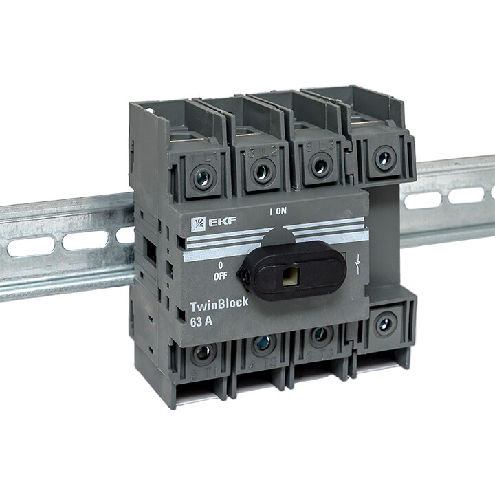 Рубильники серии TwinBlock предназначены для пропускания номинальных токов, включения и отключения электрических цепей номинальным напряжением до 690 В переменного тока частотой 50 и 60 Гц в устройствах распределения электрической энергии. Выключатели-разъединители серии TwinBlock (модели 40-800 А) имеют возможность подключения дополнительного четвертого полюса.
