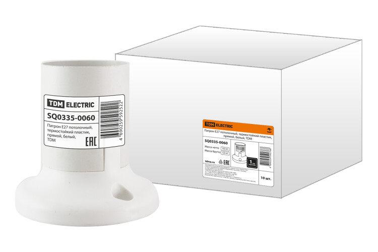 Патрон Е27 потолочный, термостойкий пластик, прямой, белый, TDM
