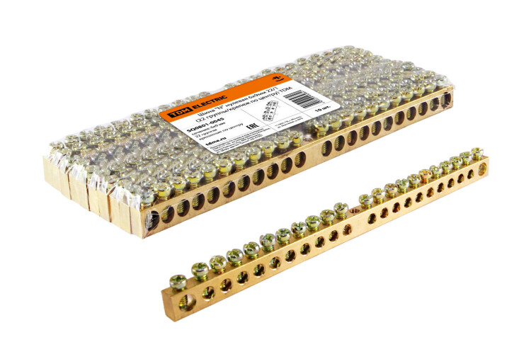 Применение:В шкафах, щитах, сборках различного назначения. Материалы:Контактная группа шин изготовлена из латуни с содержанием меди не менее 57%.Преимущества:Возможность формирования нулевых шин и шин заземления нестандартной длины до 1 метра (168 отверстий) (SQ0801-0086)Длина шины 1000 мм (SQ0801-0086).Самый широкий выбор шин позволяет точно подобрать подходящую под размер установки шину Назначение:Шины нулевые неизолированные применяются в щитовом оборудовании для подсоединения нулевых рабочих (N) и нулевых защитных проводов (РЕ). 0: