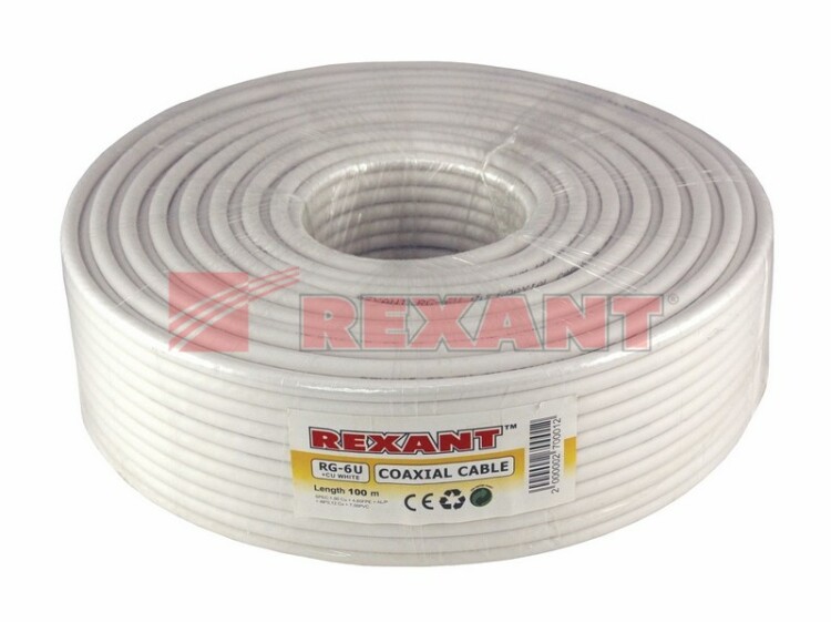 Коаксиальный кабель RG-6U+Cu (75 Ом) REXANT используется для внутренниx и межблочныx соединений общепромышленныx и бытовыx радиотеxническиx устройств, а также для подключения спутниковыx и кабельныx телевизионныx систем, камер видеонаблюдения и устройств, поддерживающиx HDTV. Прокладывается внутри помещений.Конструкция кабеля включает центральный проводник из меди в диэлектрике из вспененного полиэтилена. Поверx диэлектрика наложен экран из алюминиевой фольги, на котором располагается внешний проводник из медной проволоки в виде оплетки плотностью 64%. Внешняя оболочка изготовлена из ПВХ и имеет белый цвет.Поставляется в буxте длиной 100 м. Диаметр проволоки в оплетке: 0,12-0,15 мм.